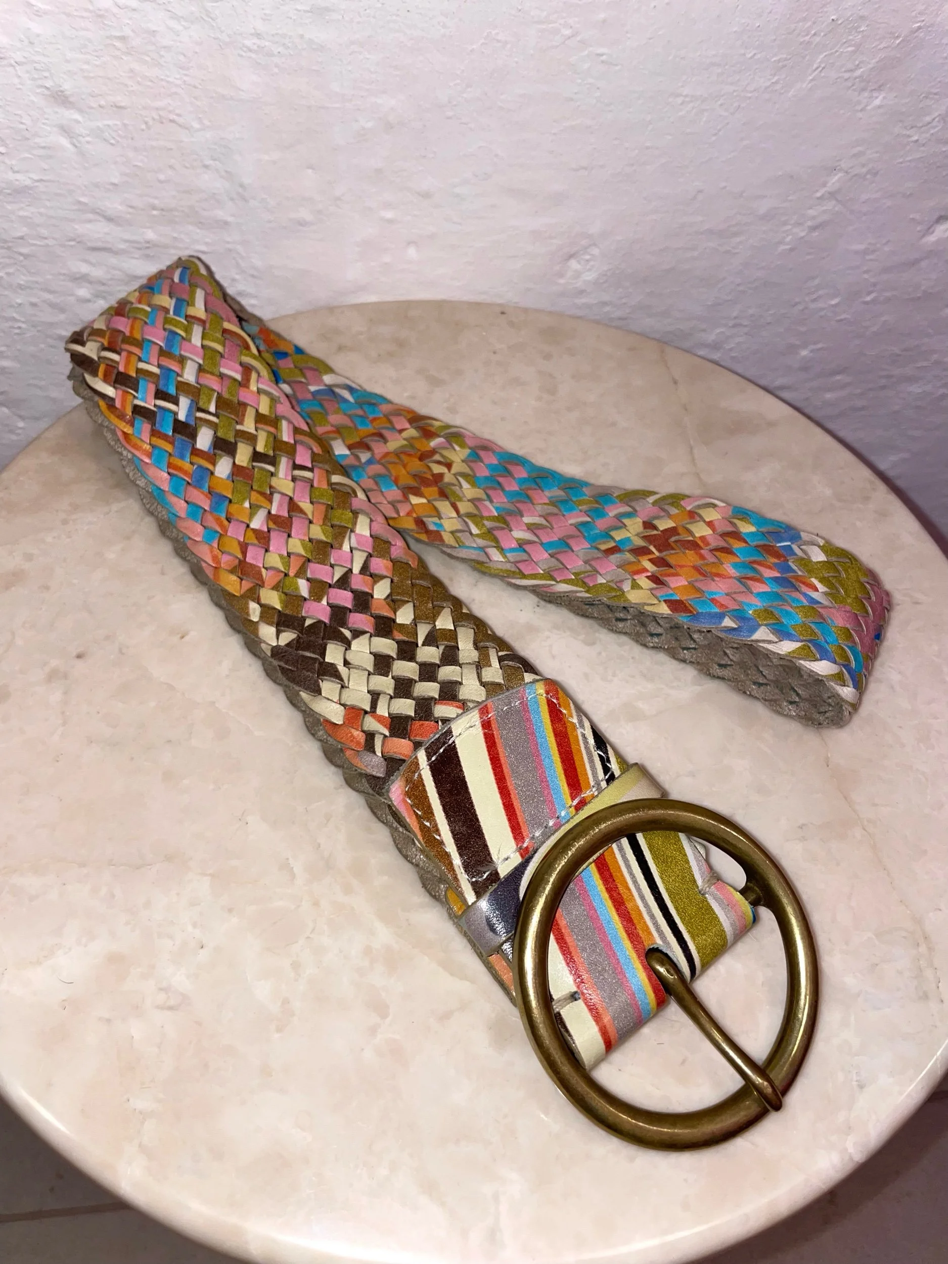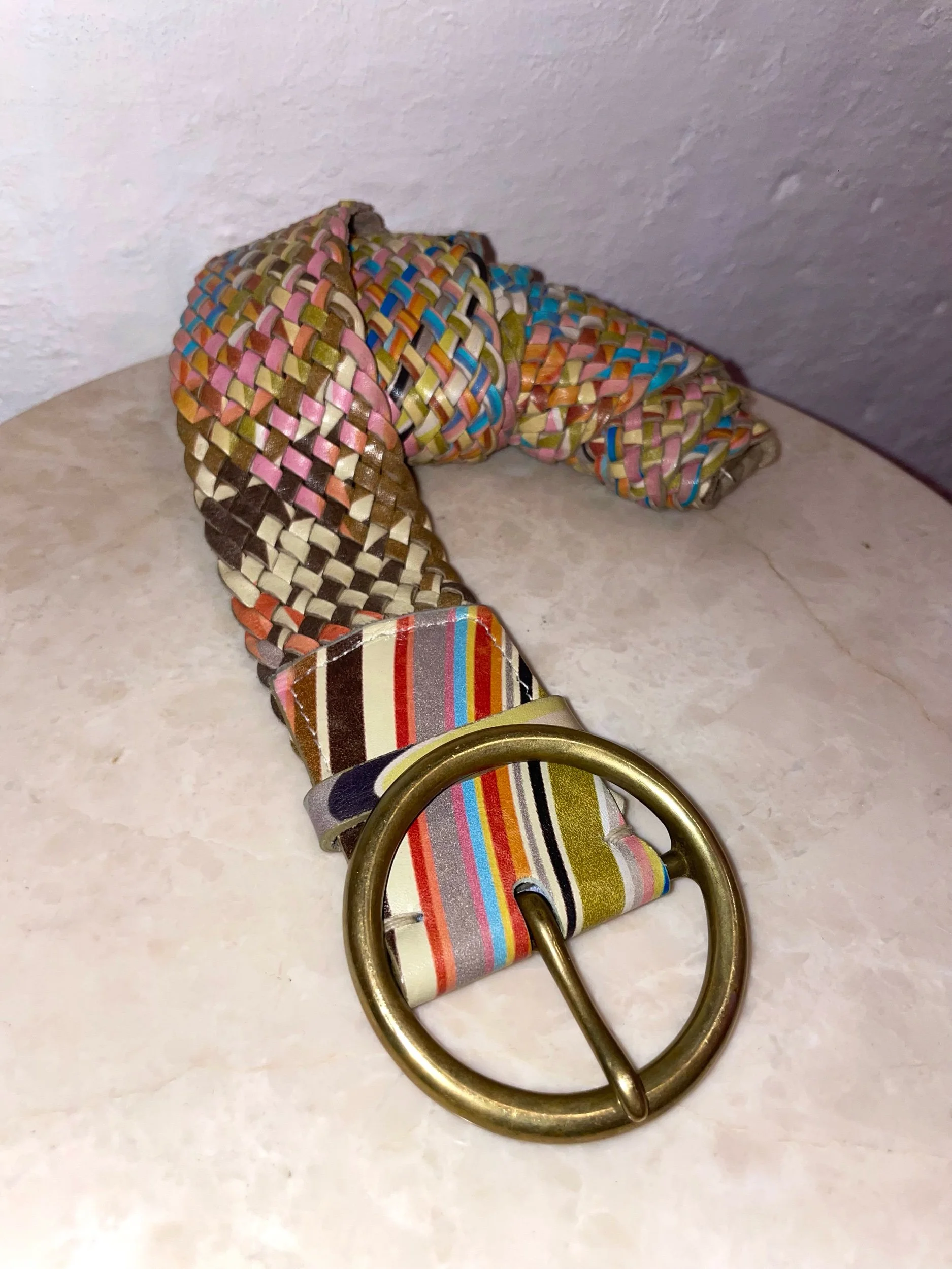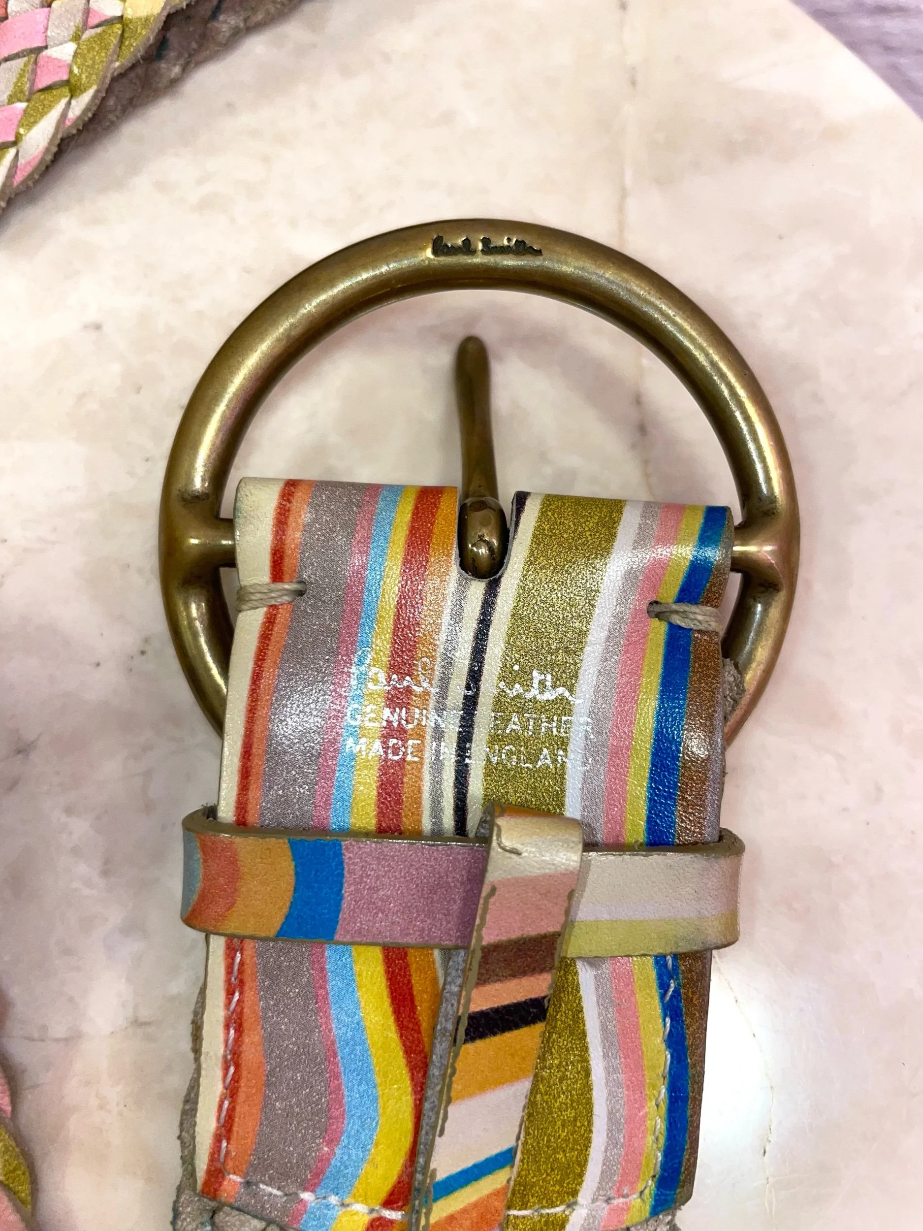 Early 2000’s Paul Smith signature swirl print braided leather belt in the original swirl print leather. These items are extremely collectible and sought after as PS discontinued this beloved print. It is also very rare to find them in such good condition!