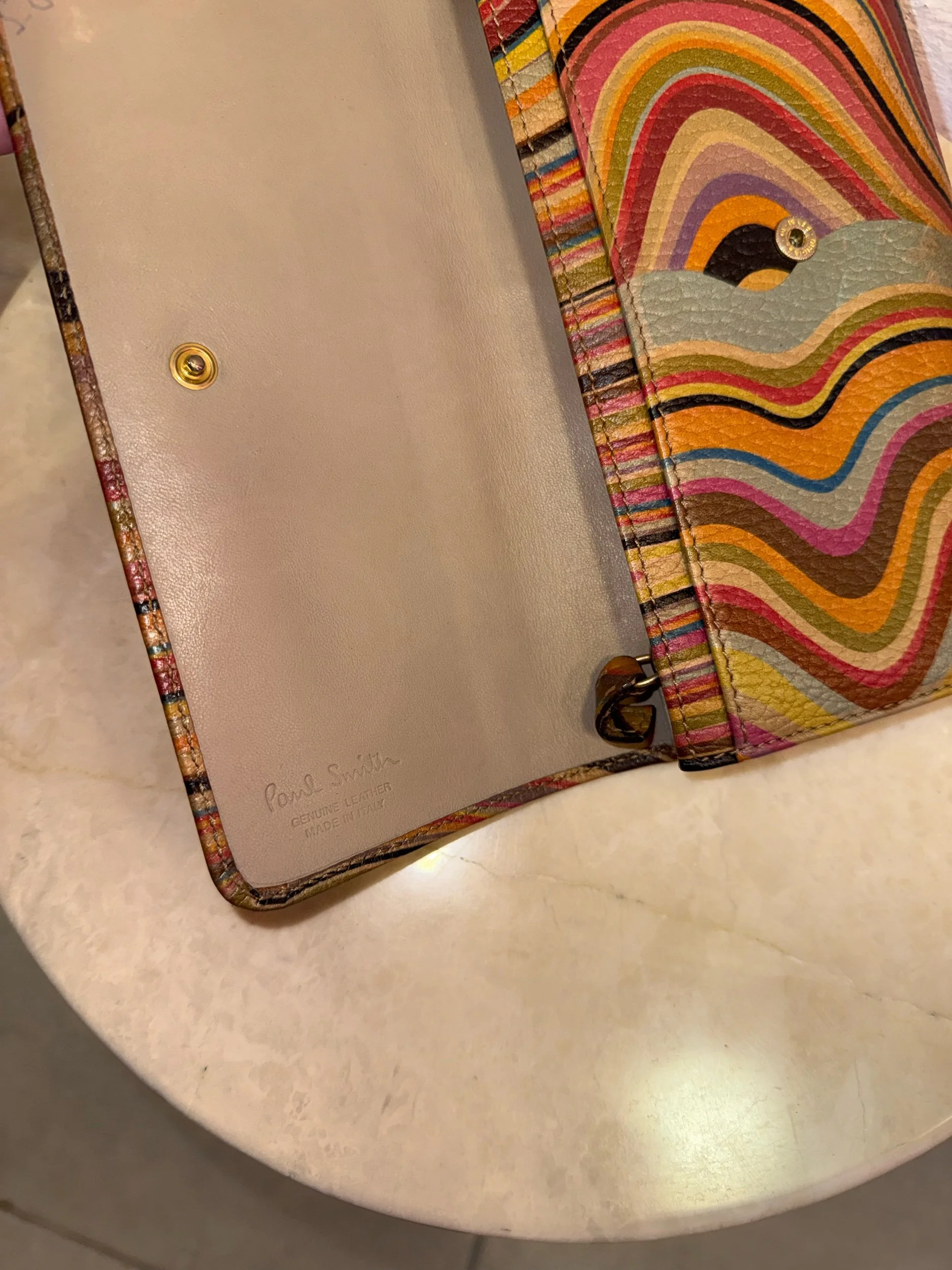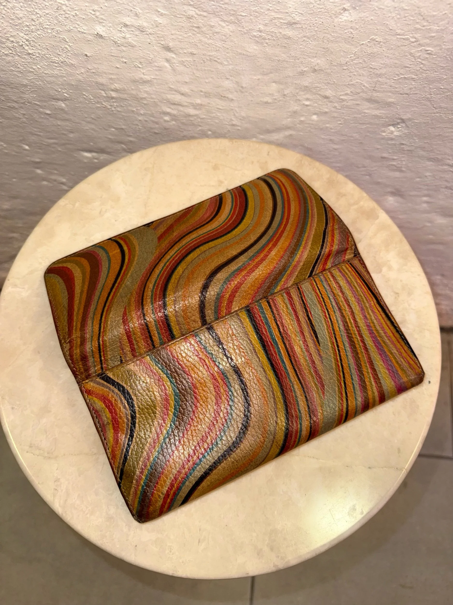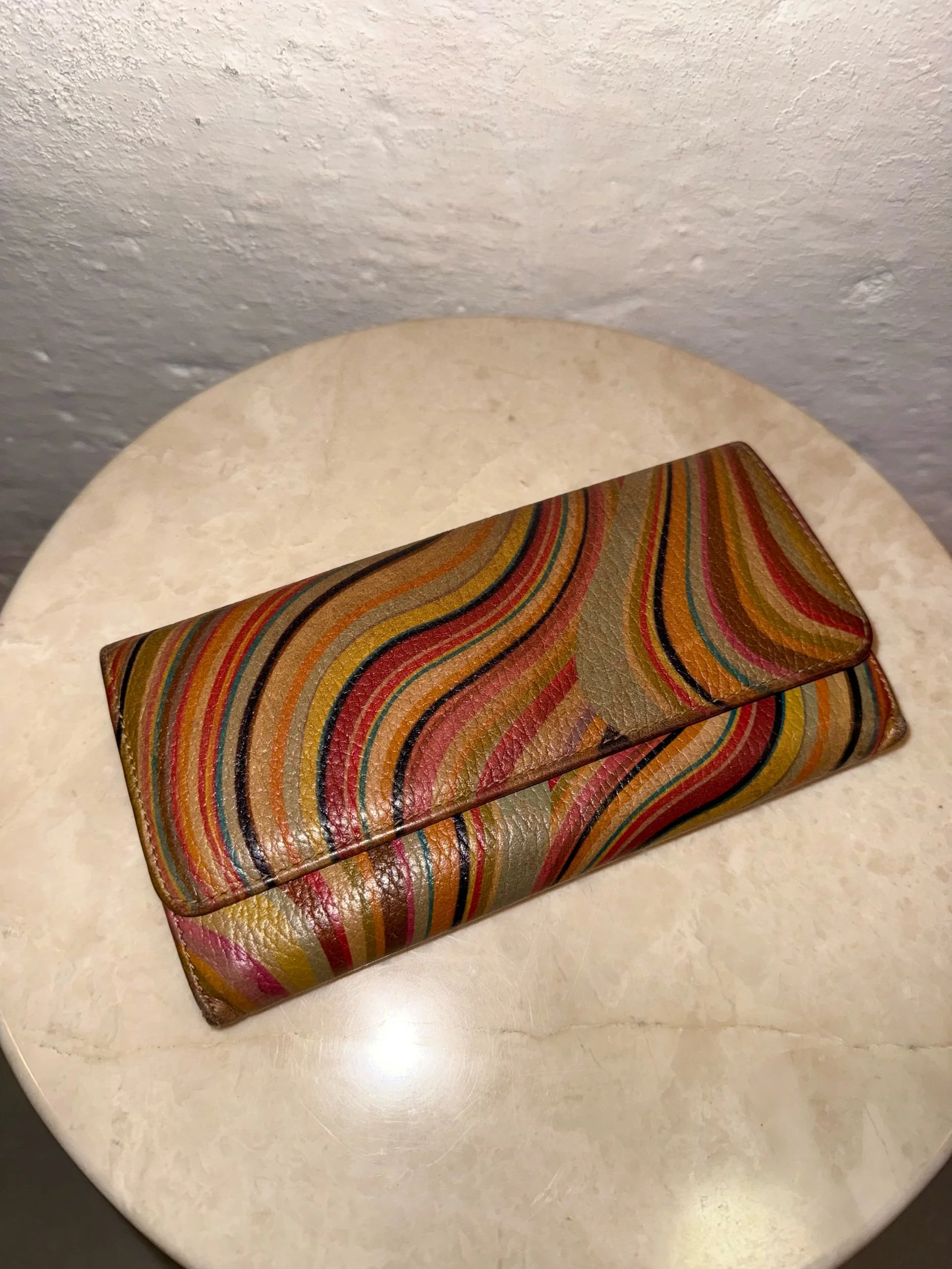 Early 2000’s Paul Smith signature swirl print flap purse in the original swirl print leather. These purses are extremely collectible and sought after as PS discontinued this beloved print. It is also very rare to find them in such good condition!