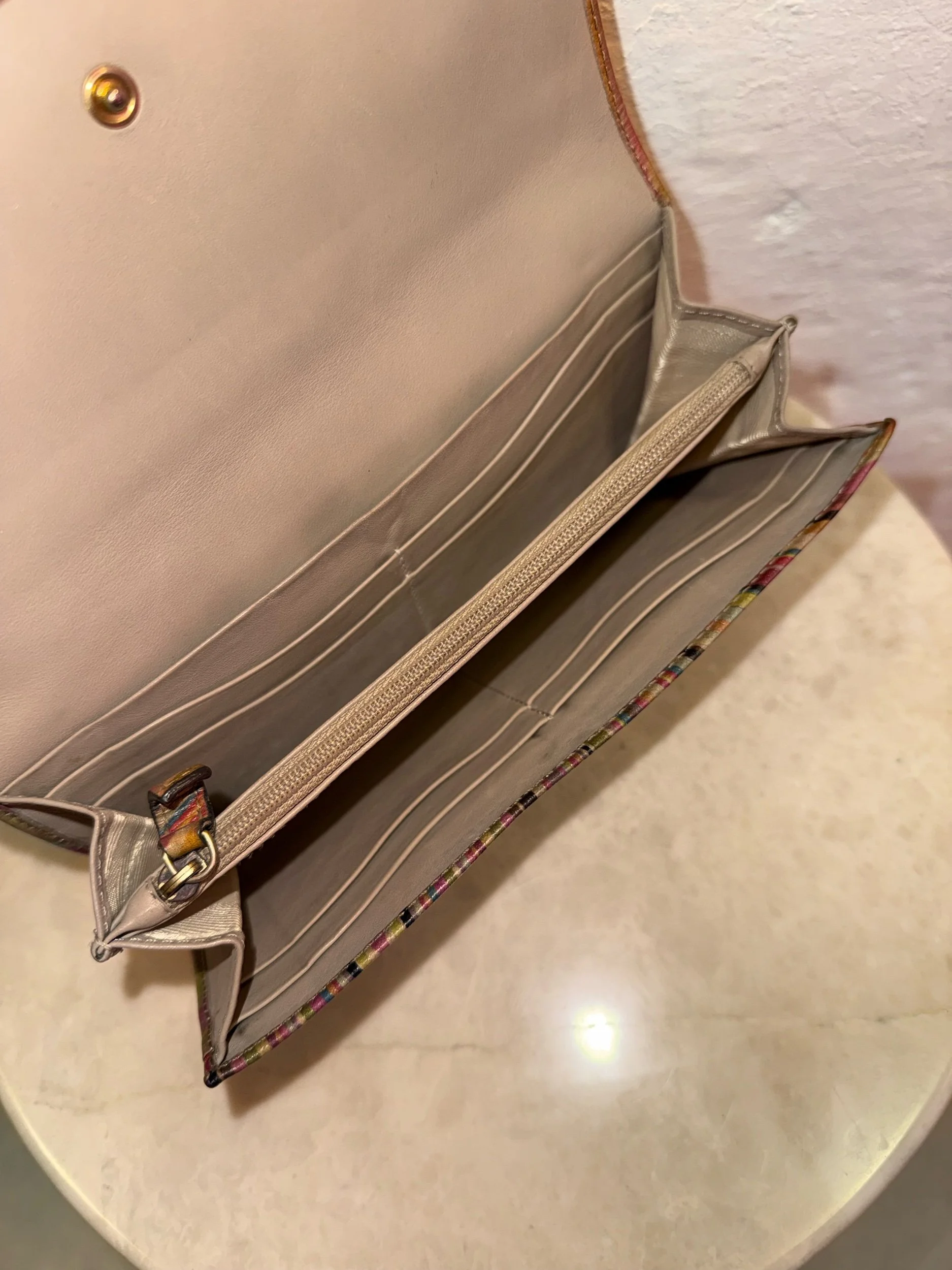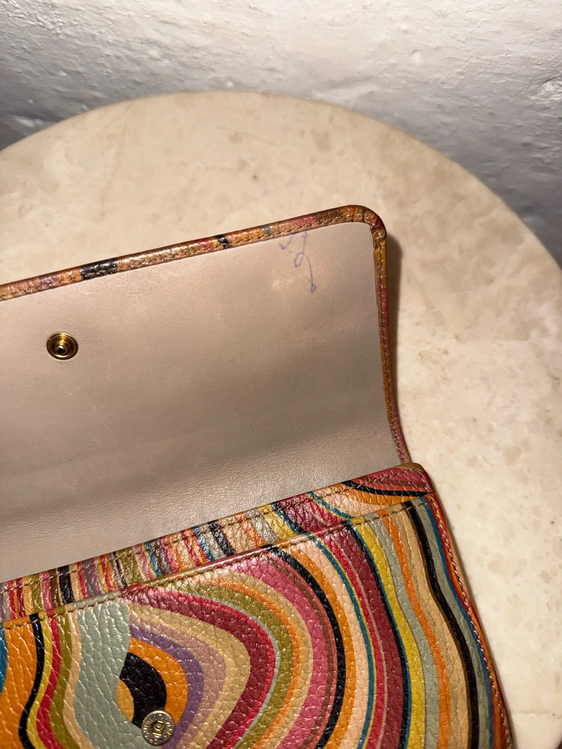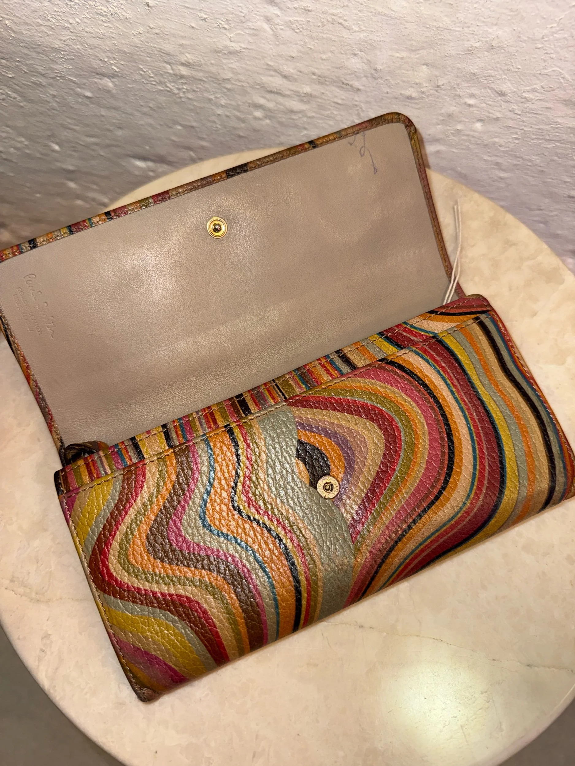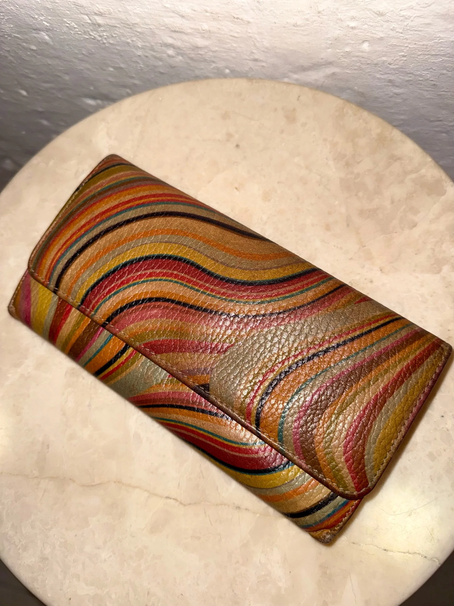 Early 2000’s Paul Smith signature swirl print flap purse in the original swirl print leather. These purses are extremely collectible and sought after as PS discontinued this beloved print. It is also very rare to find them in such good condition!