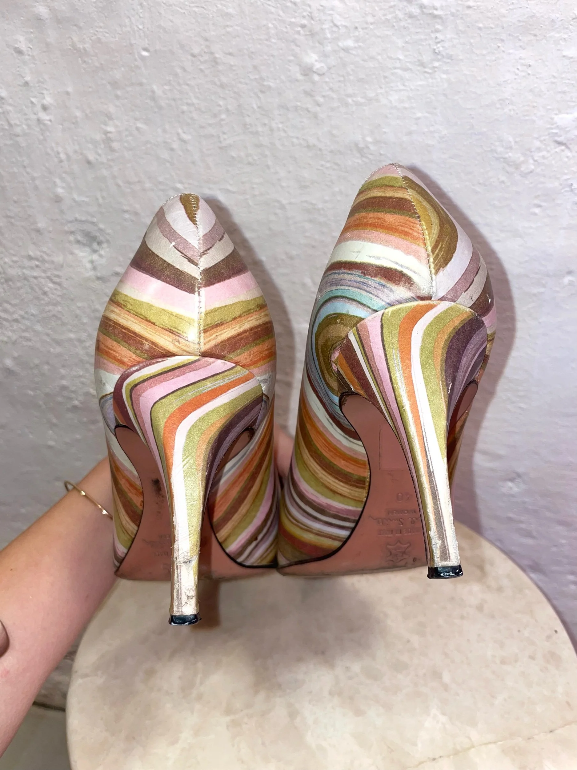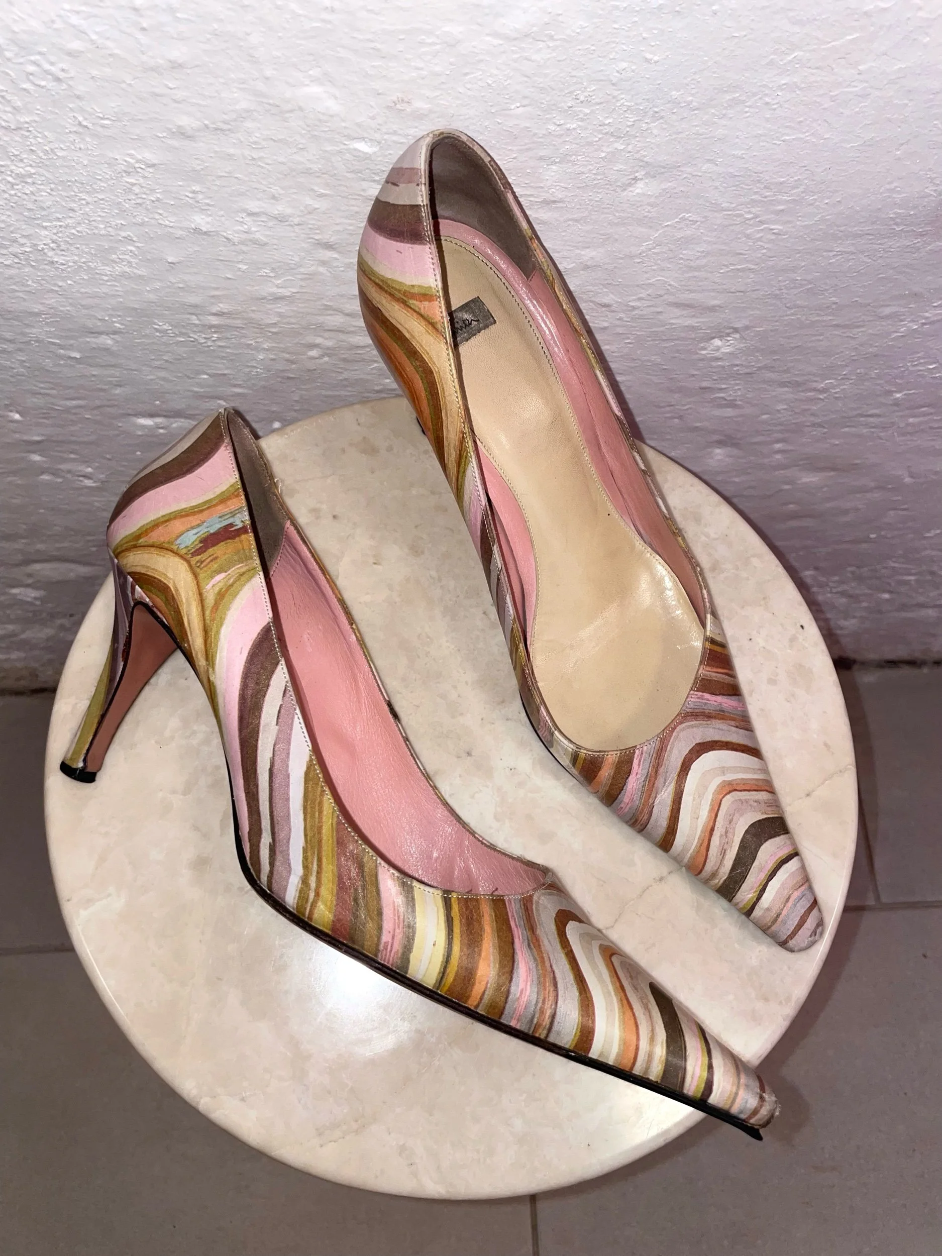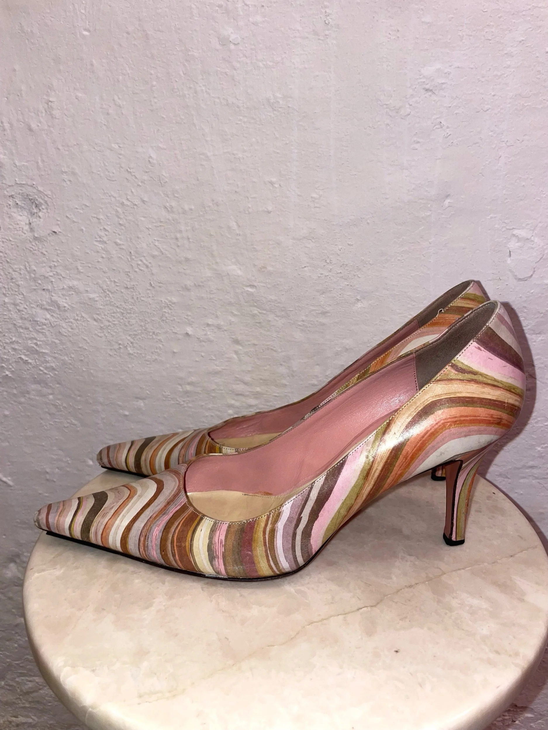 dEarly 2000’s Paul Smith signature swirl print leather heels. These items are extremely collectible and sought after as PS discontinued this beloved print.