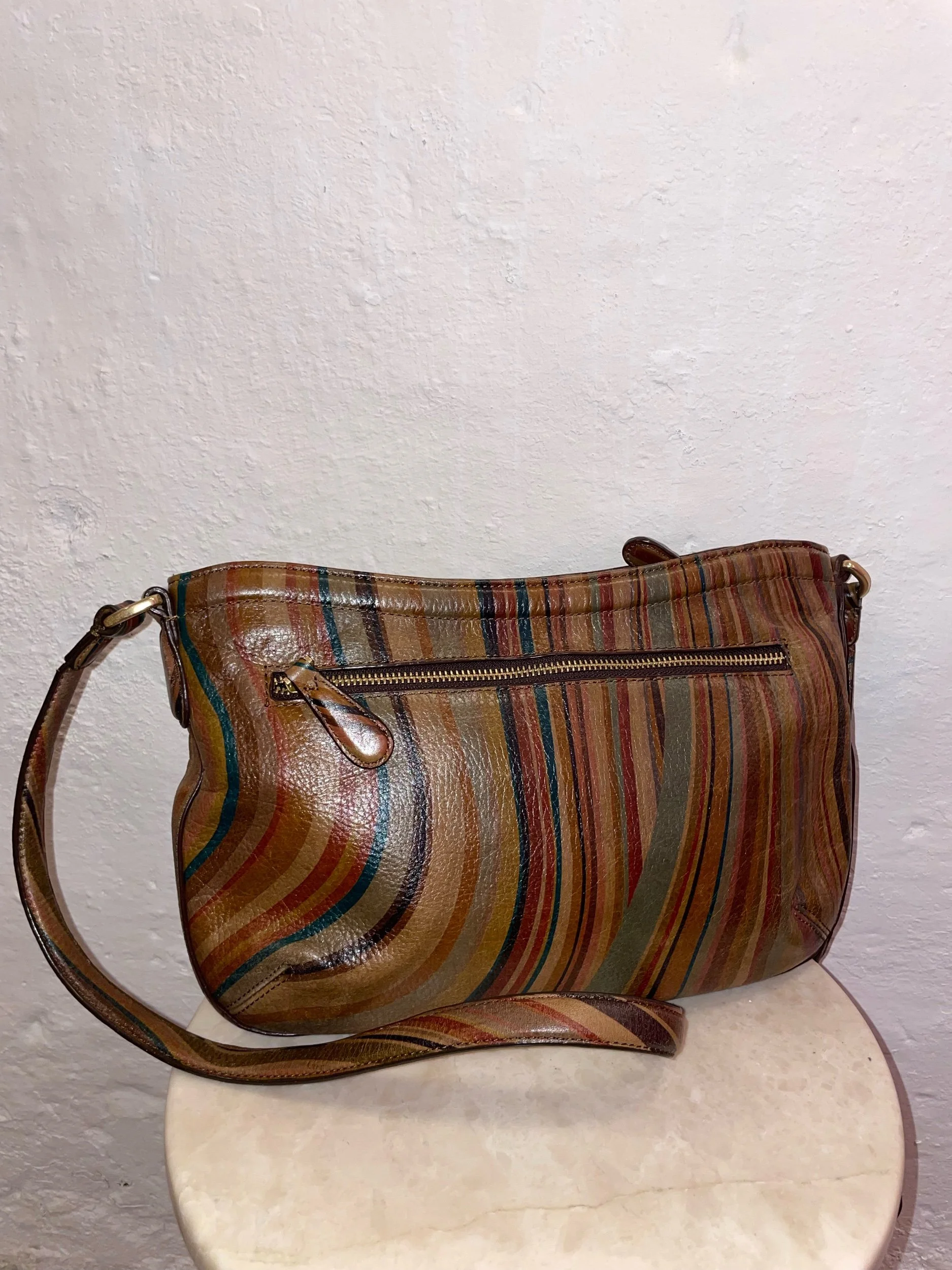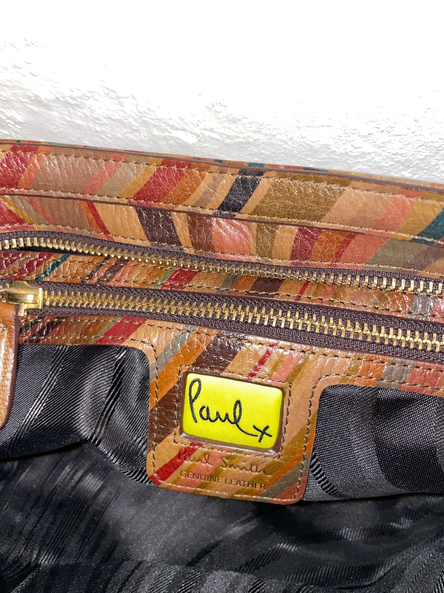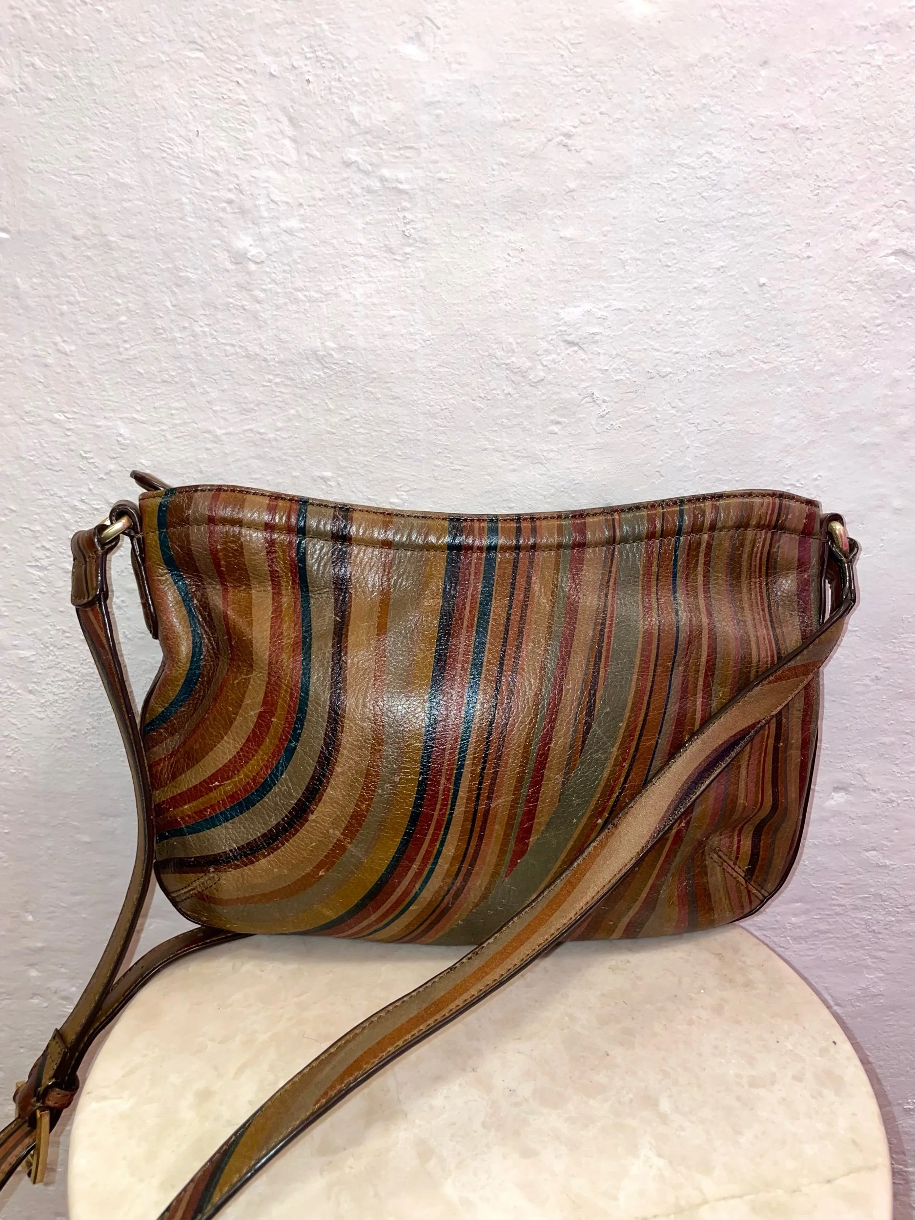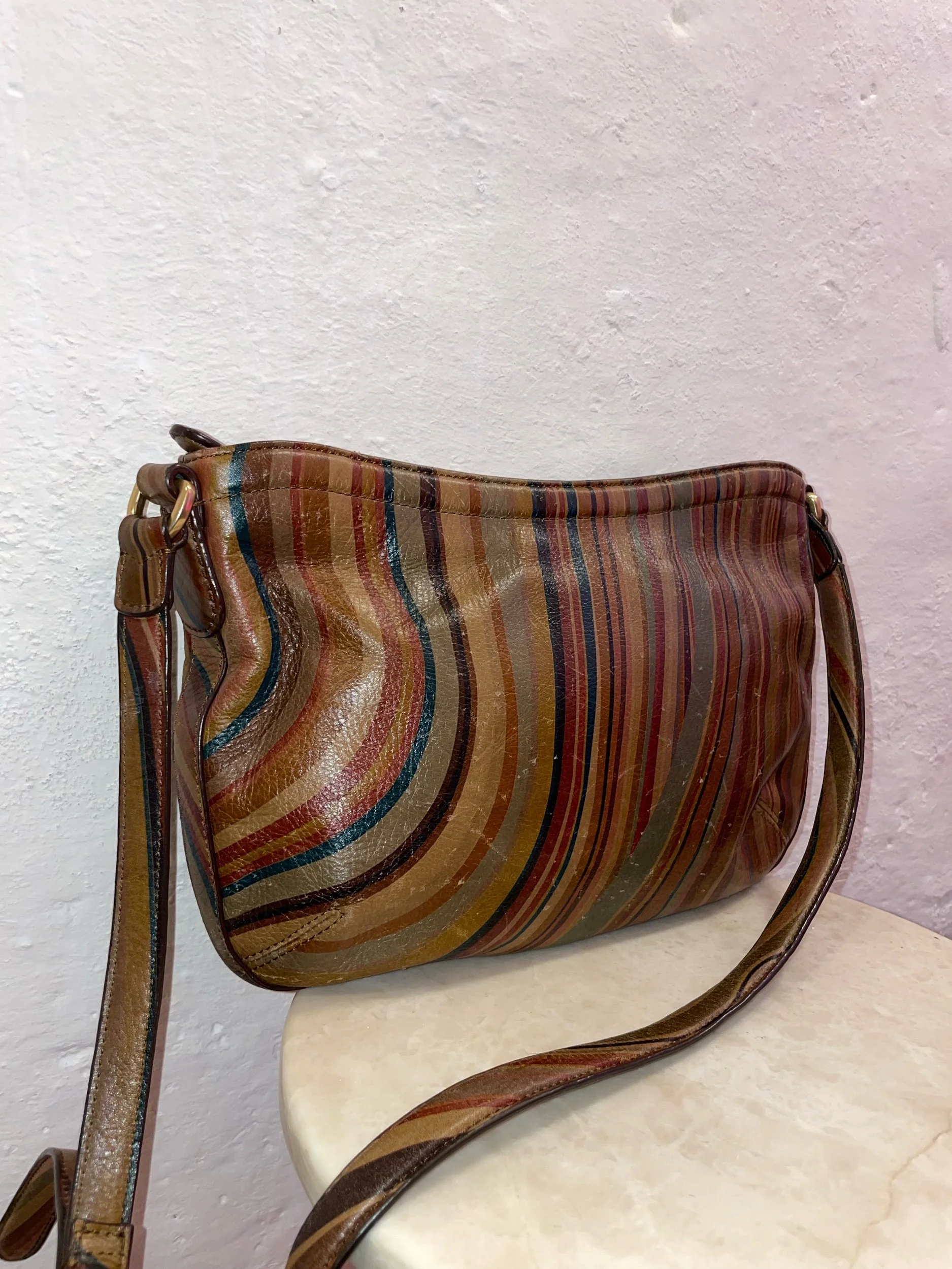 Paul Smith Vintage Brown Leather Swirl Print Crossbody Bag