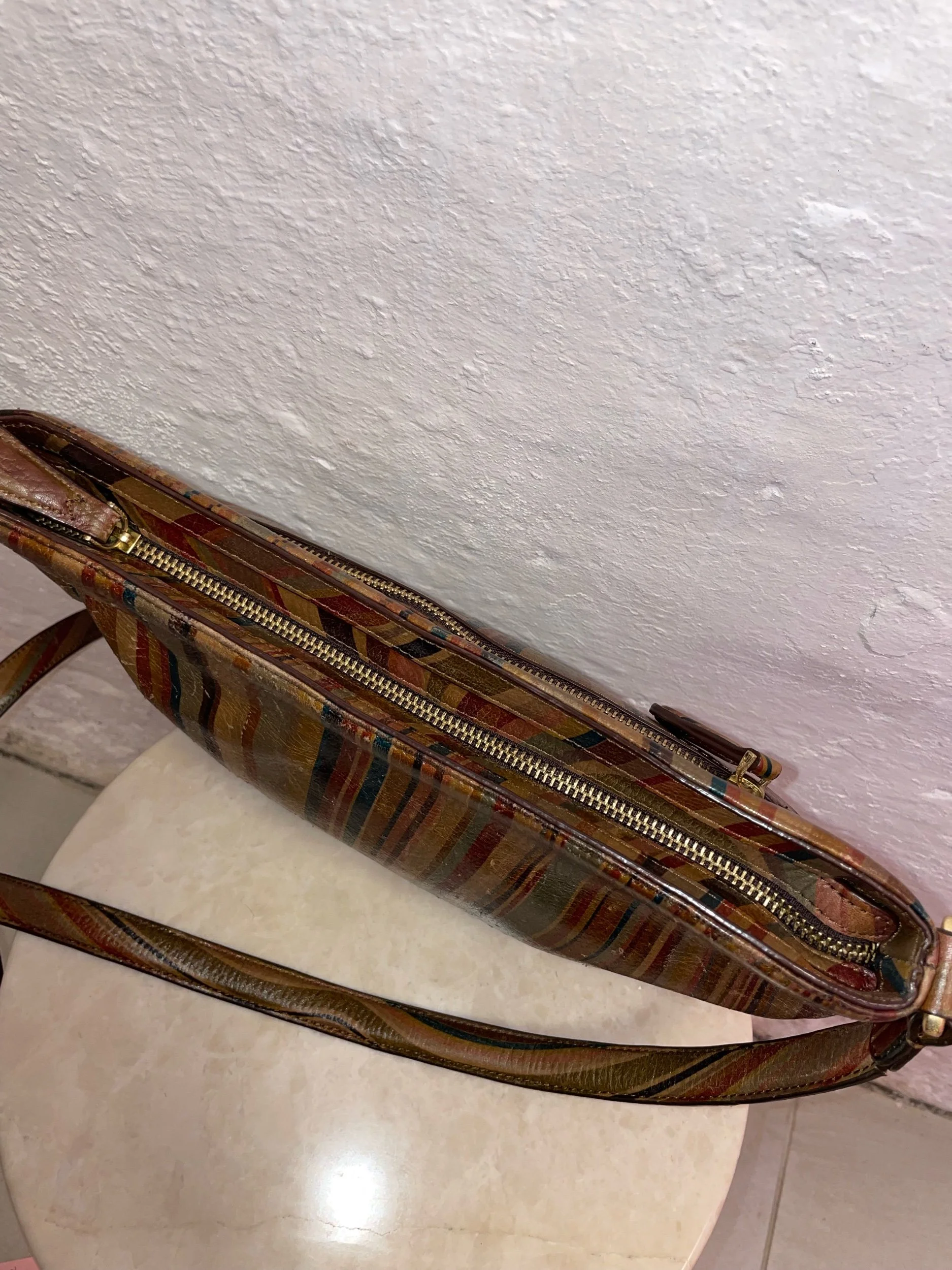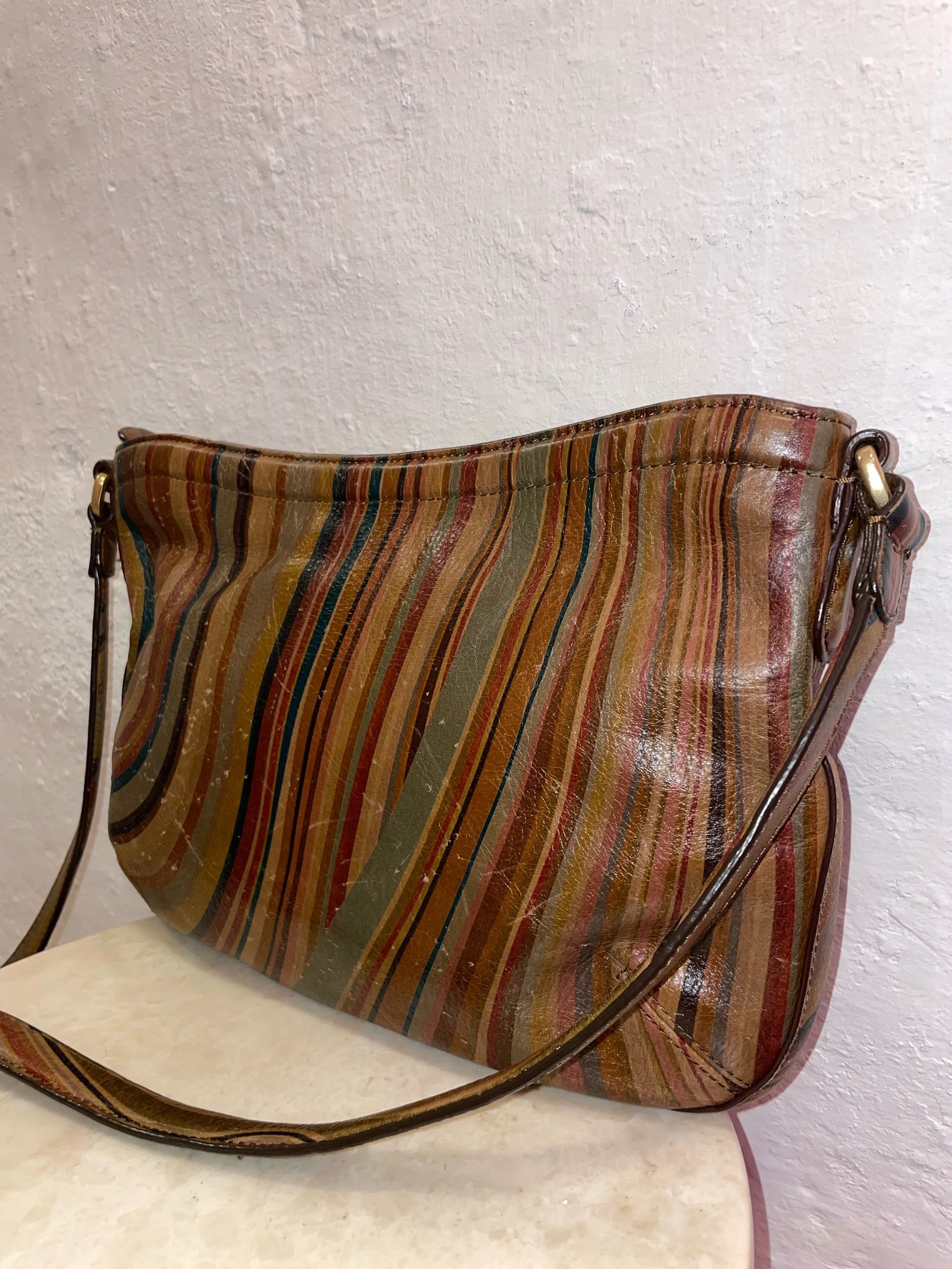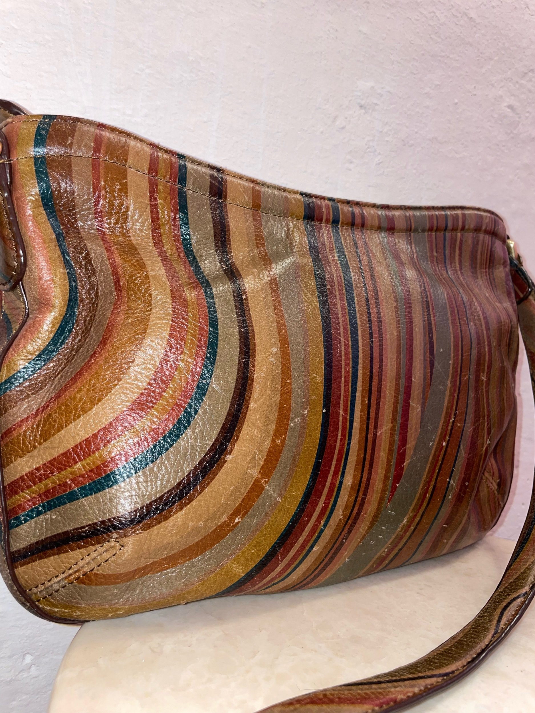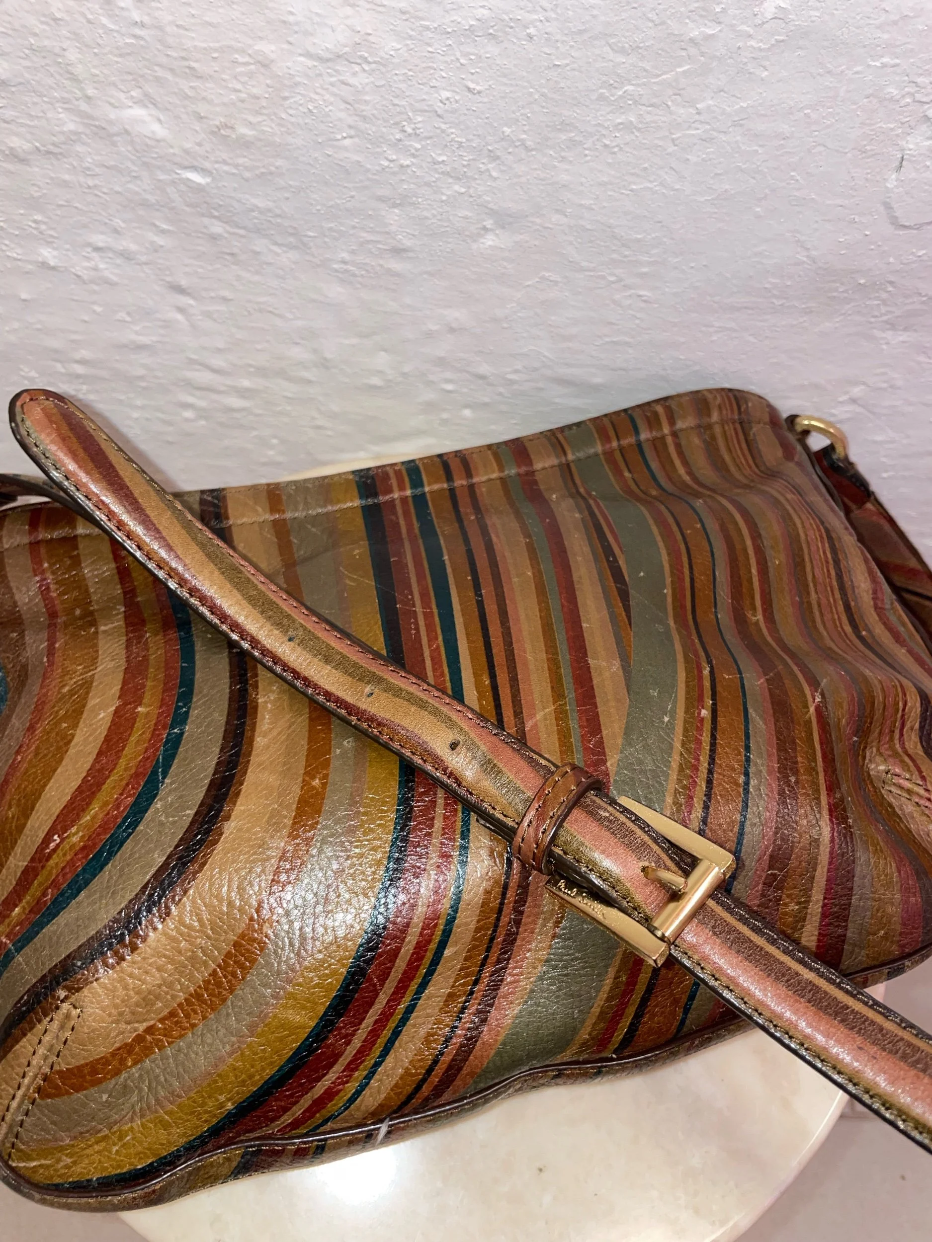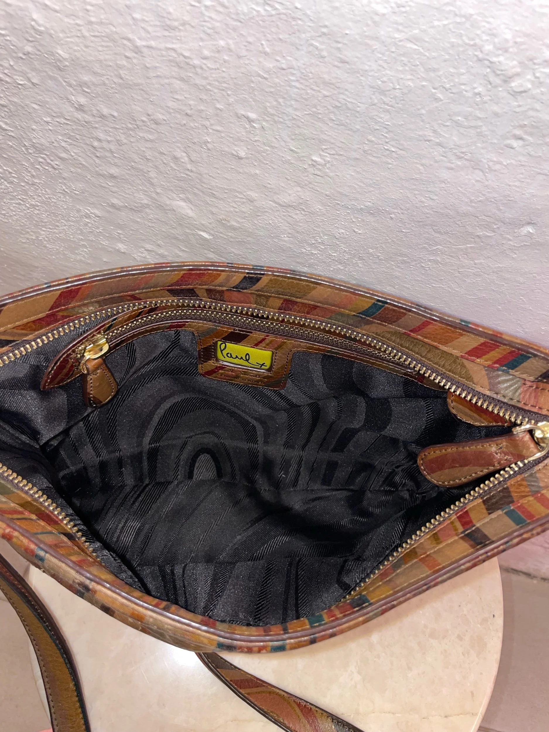 Paul Smith Vintage Brown Leather Swirl Print Crossbody Bag