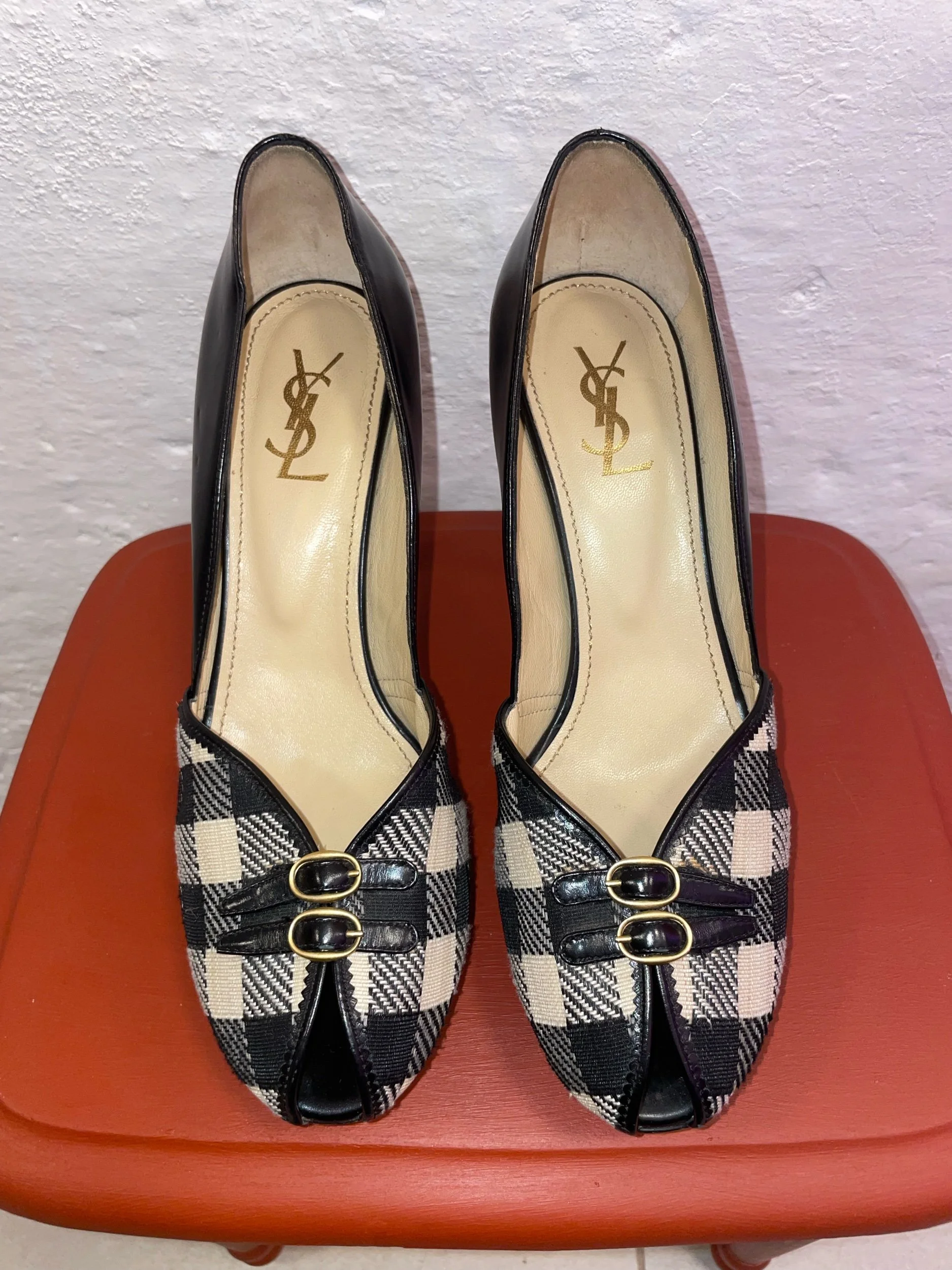 Vintage Yves Saint Laurent (YSL) Gingham Platform Stilettos.