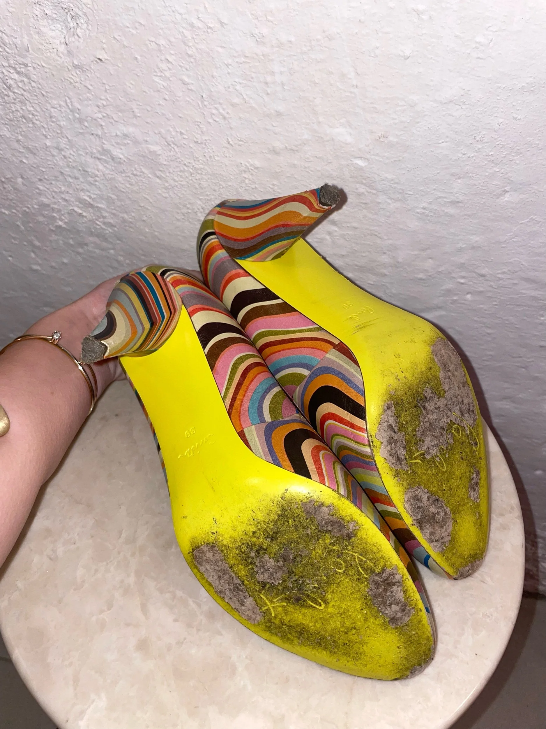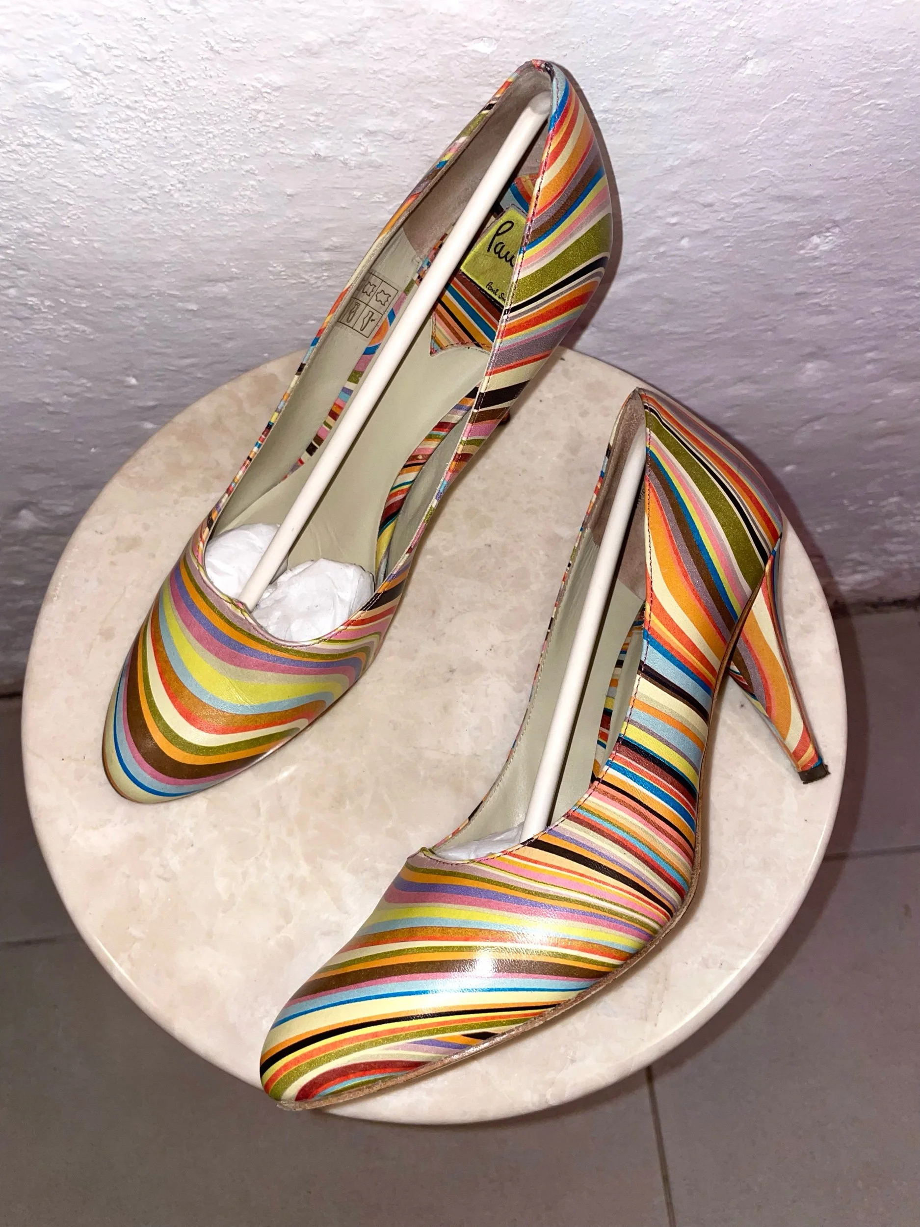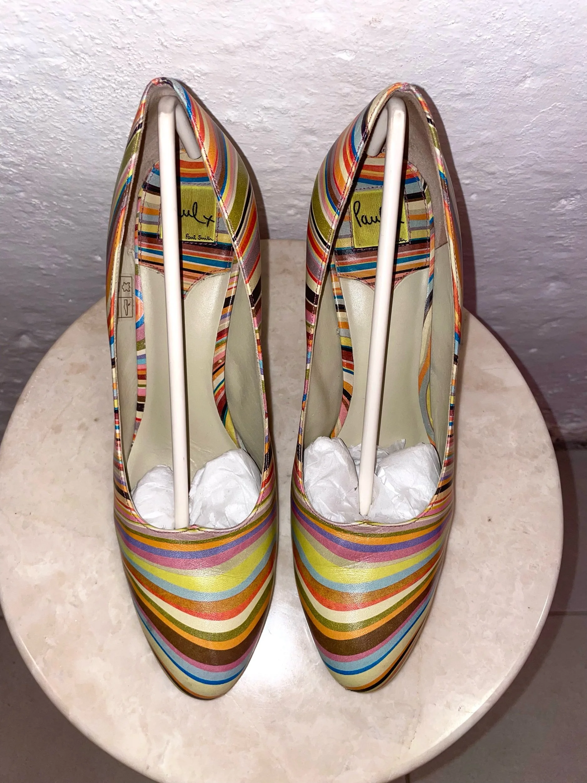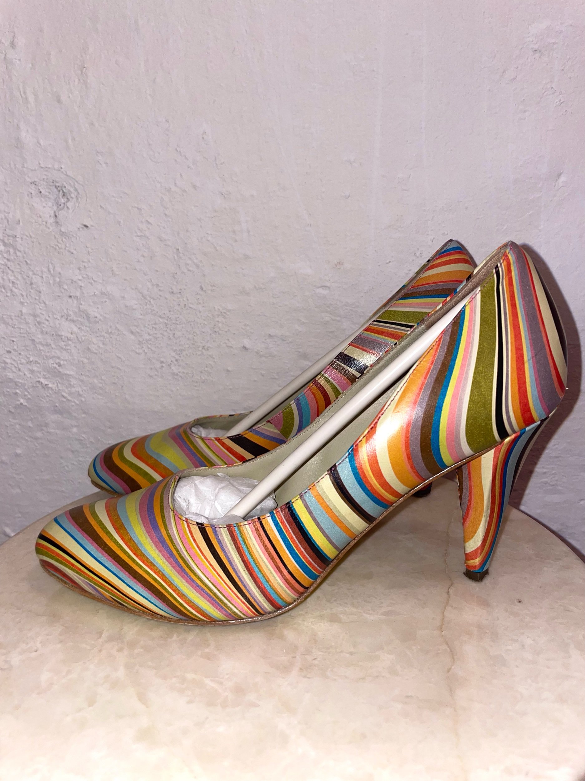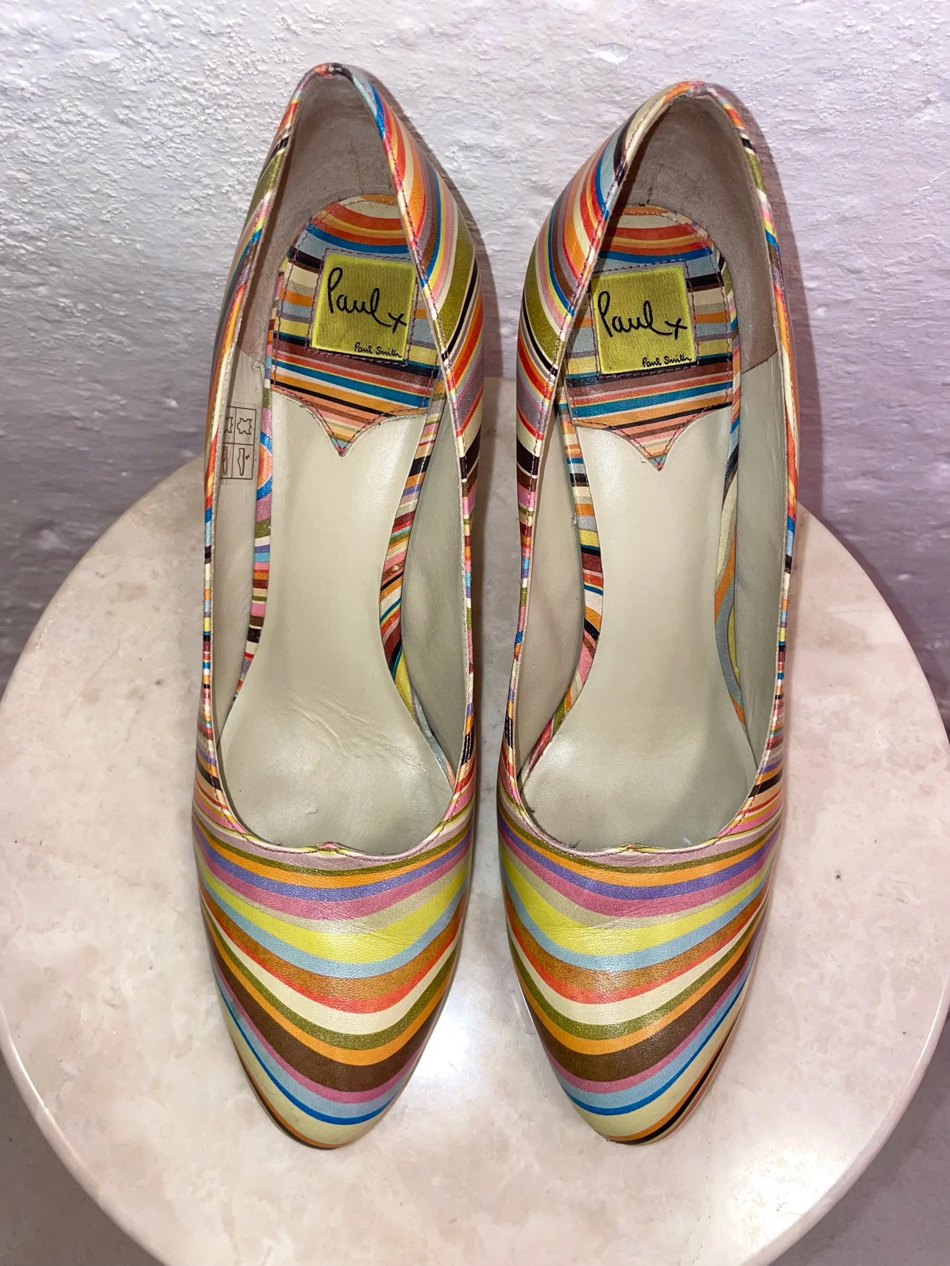 Early 2000’s Paul Smith signature swirl print leather heels. These items are extremely collectible and sought after as PS discontinued this beloved print. It is also very rare to find them in such good condition!