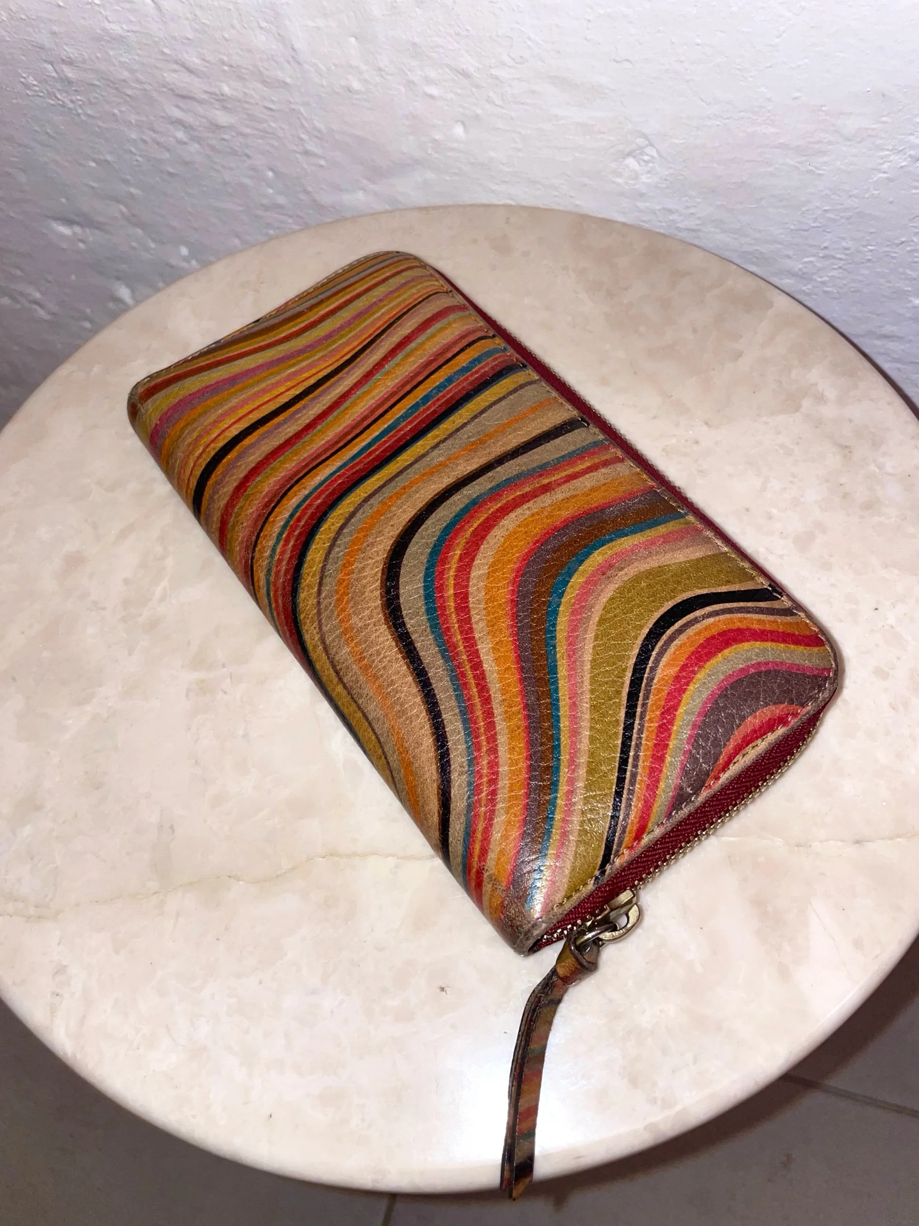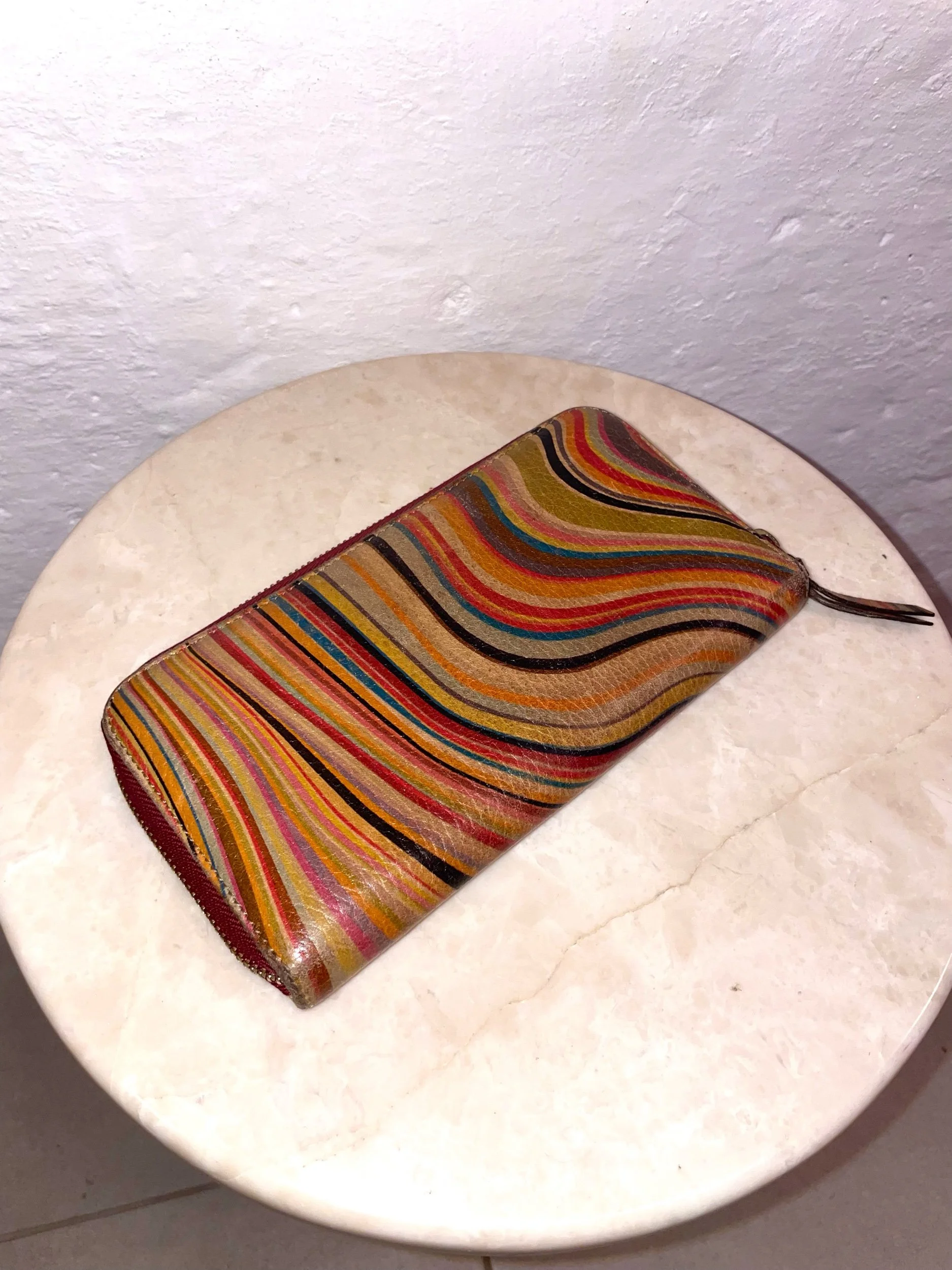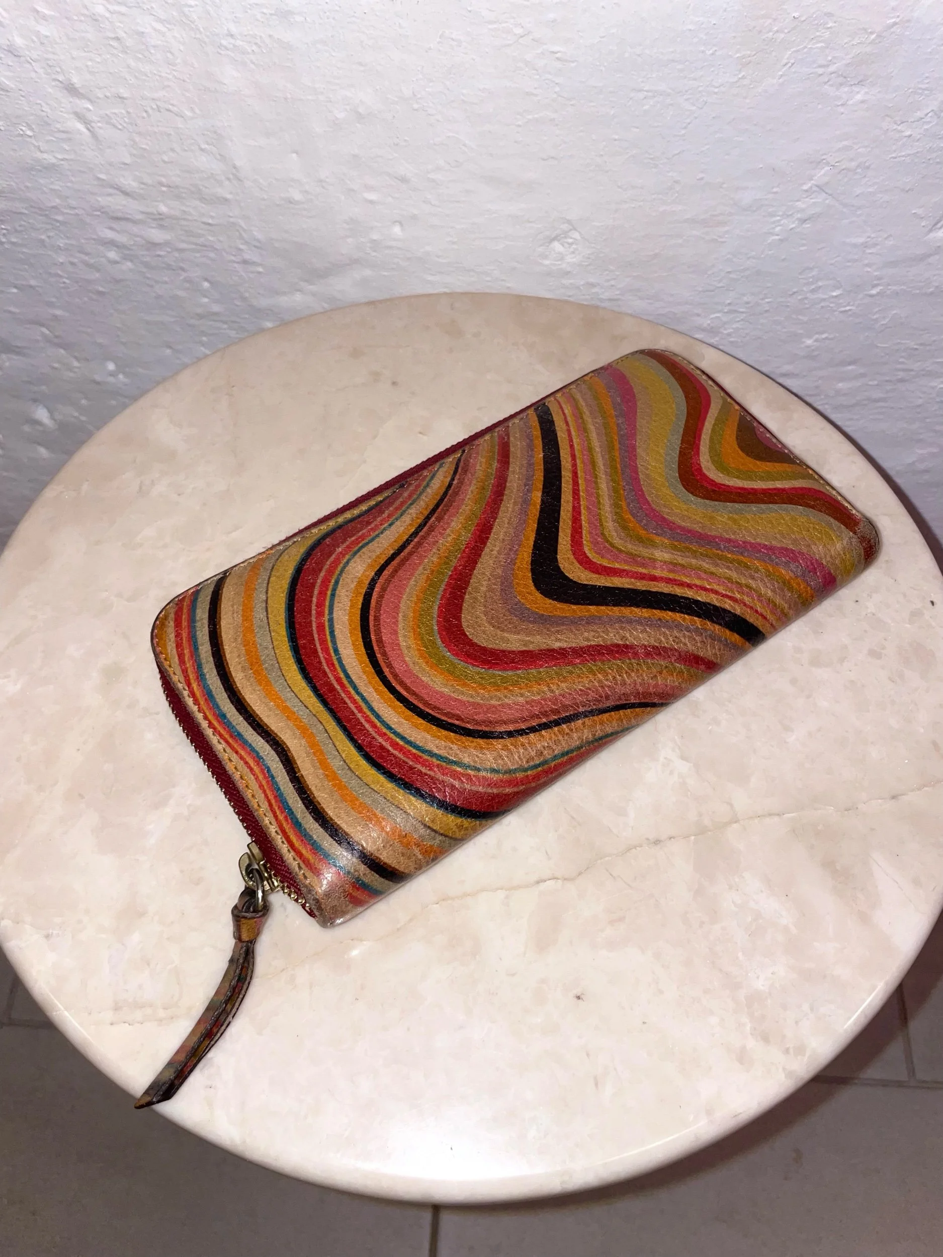 Early 2000’s Paul Smith signature swirl print zip purse in the original swirl print leather. These purses are extremely collectible and sought after as PS discontinued this beloved print. It is also very rare to find them in such good condition!