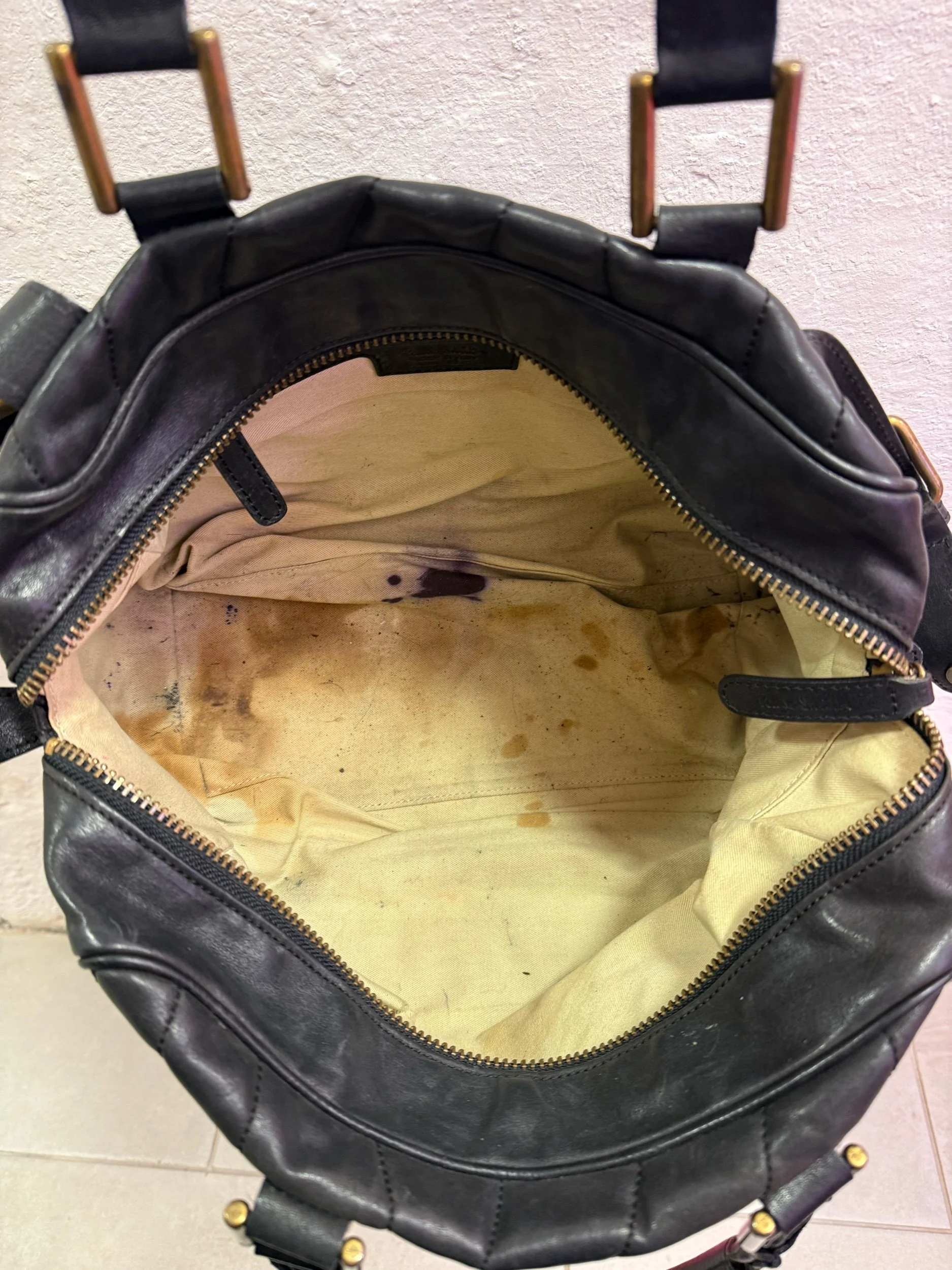 Excellent preloved condition. the interior has some staining and there are signs of wear to the base/ corners but overall no noticeable imperfections to the main body of the bag, hopefully you can see from the photos as they show the condition in detail.