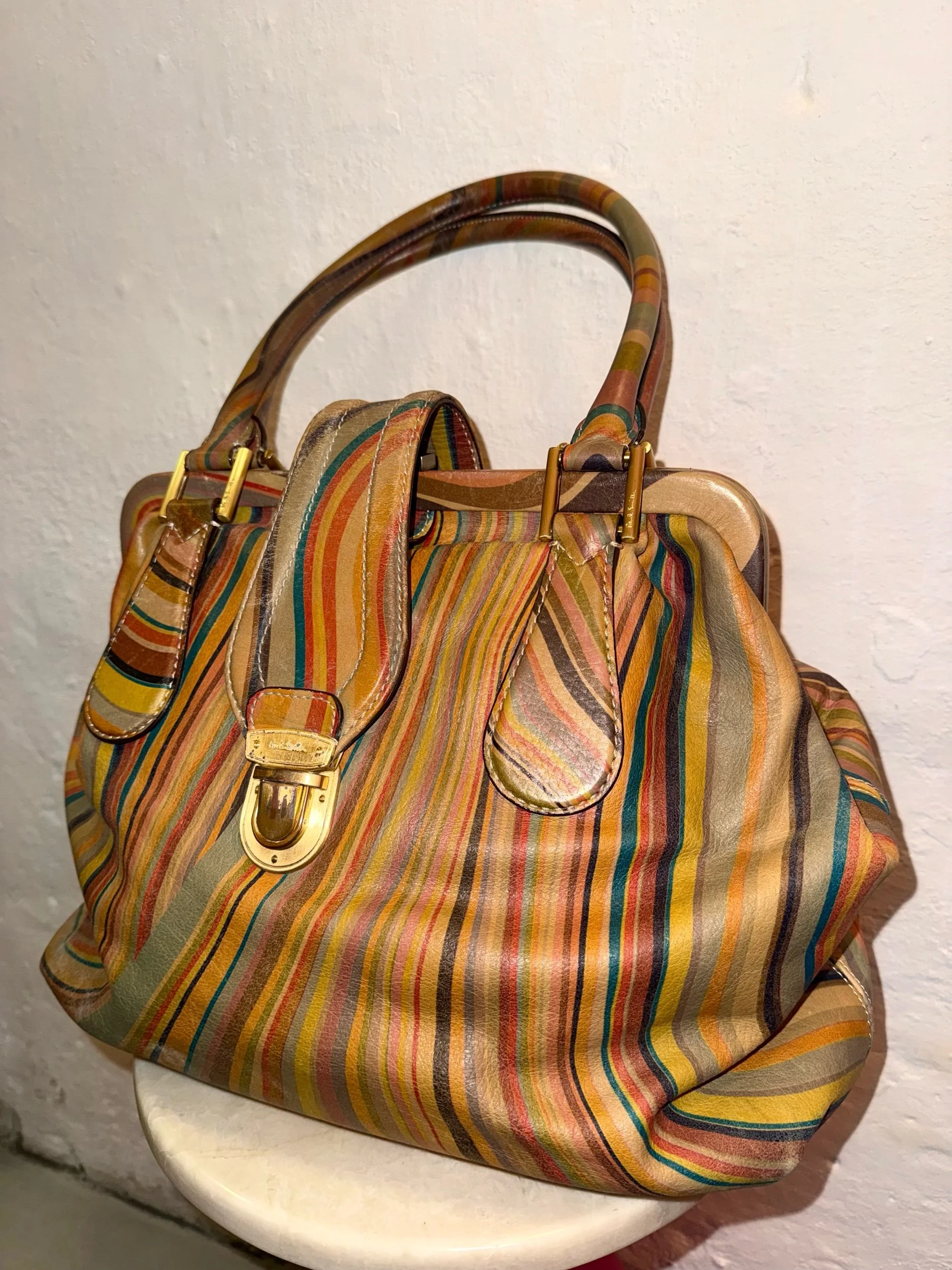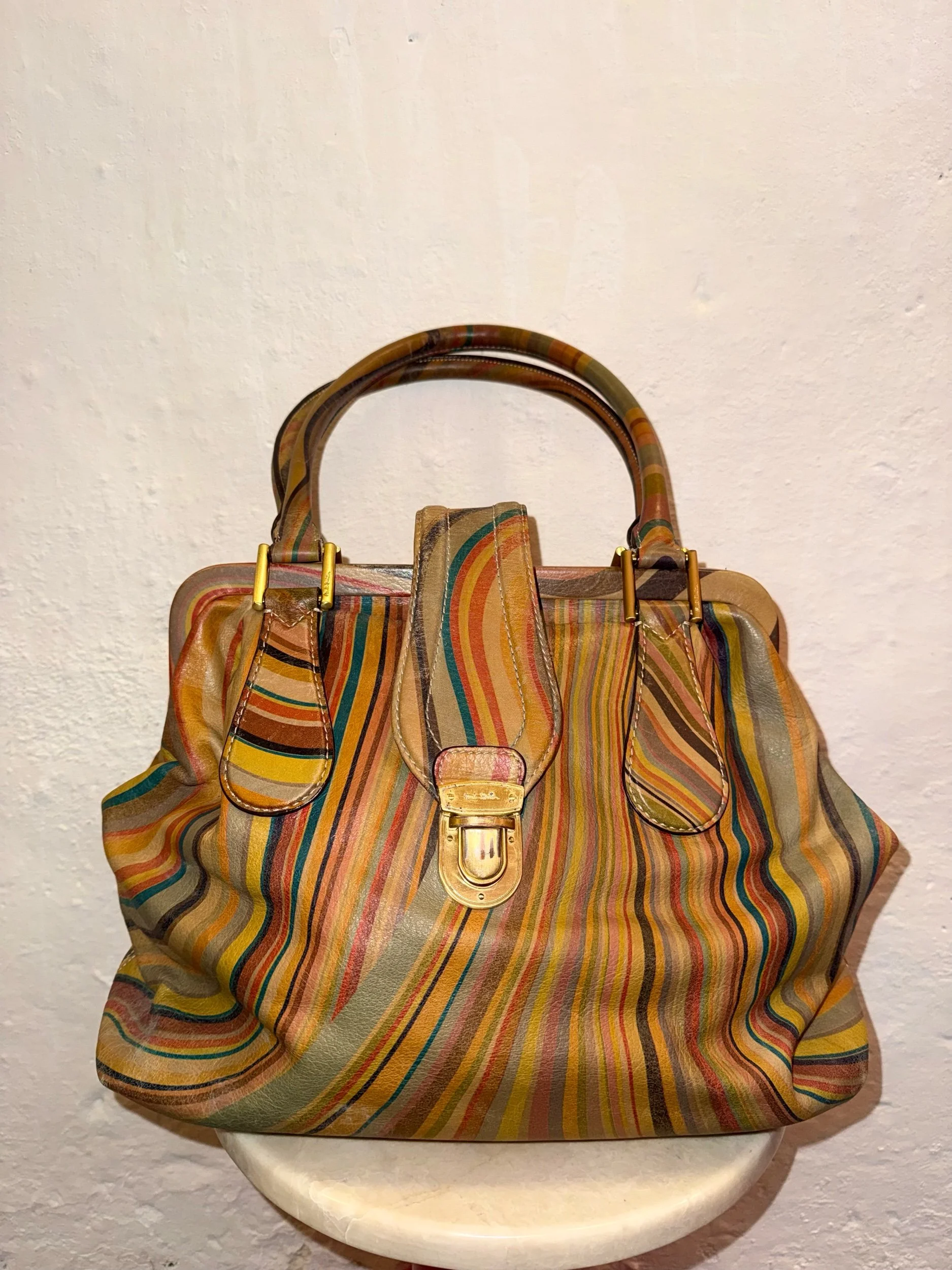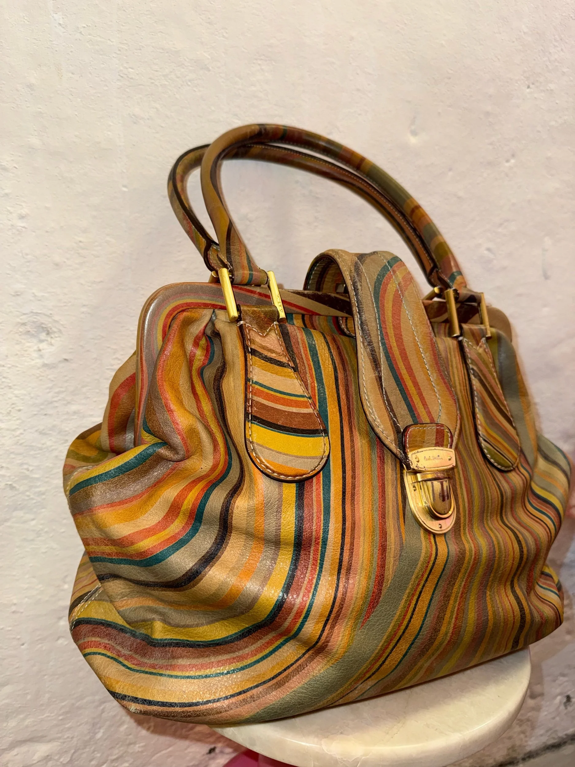 Early 2000’s Paul Smith signature swirl print tote bag in the original swirl print leather. These bags are extremely collectible and sought as PS discontinued this beloved print. It is also very rare to find them in such good condition!