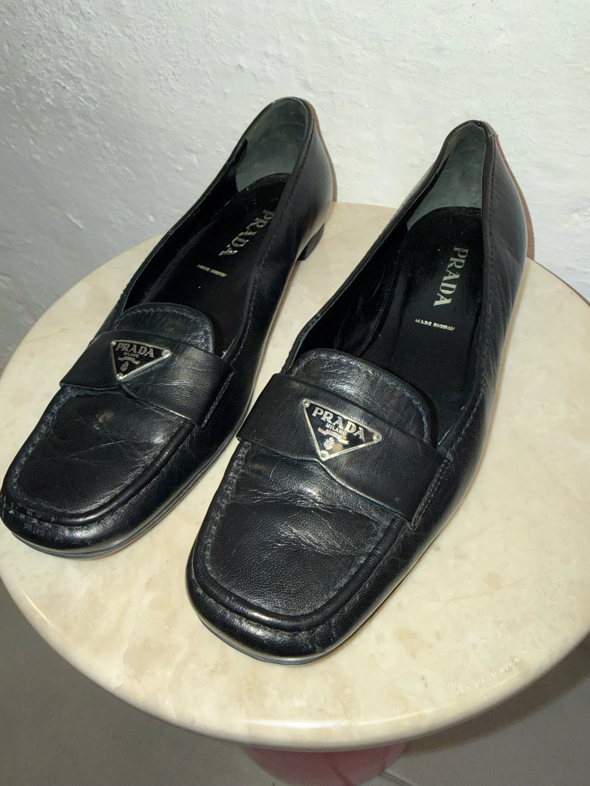 These loafers are made in Italy from soft leather. They feature the iconic Prada triangle logo, and the comfy rubber soles.